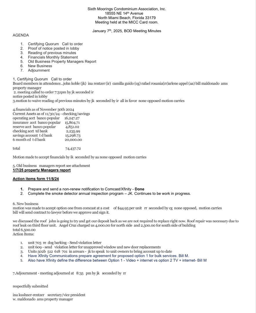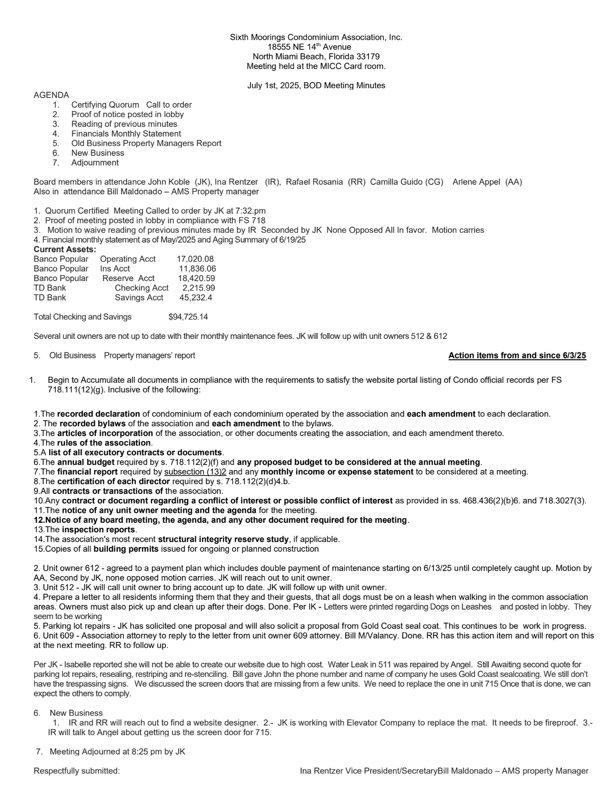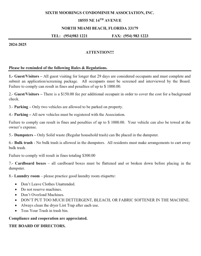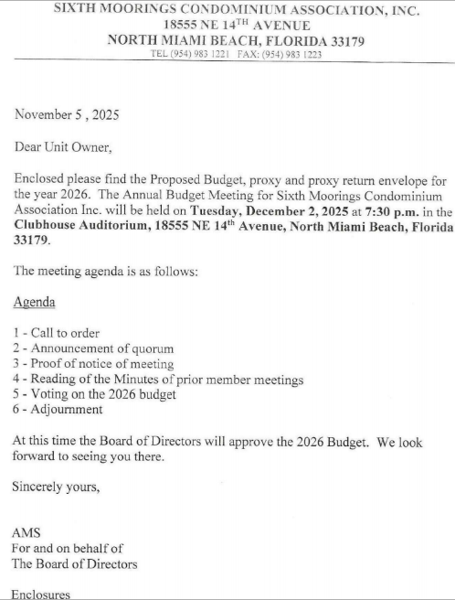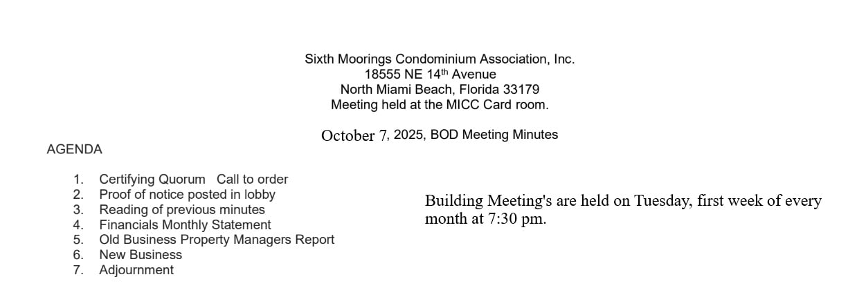 Official notices of upcoming board meetings and detailed meeting agendas for residents