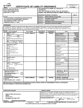 Current insurance certificates and coverage information for the association.