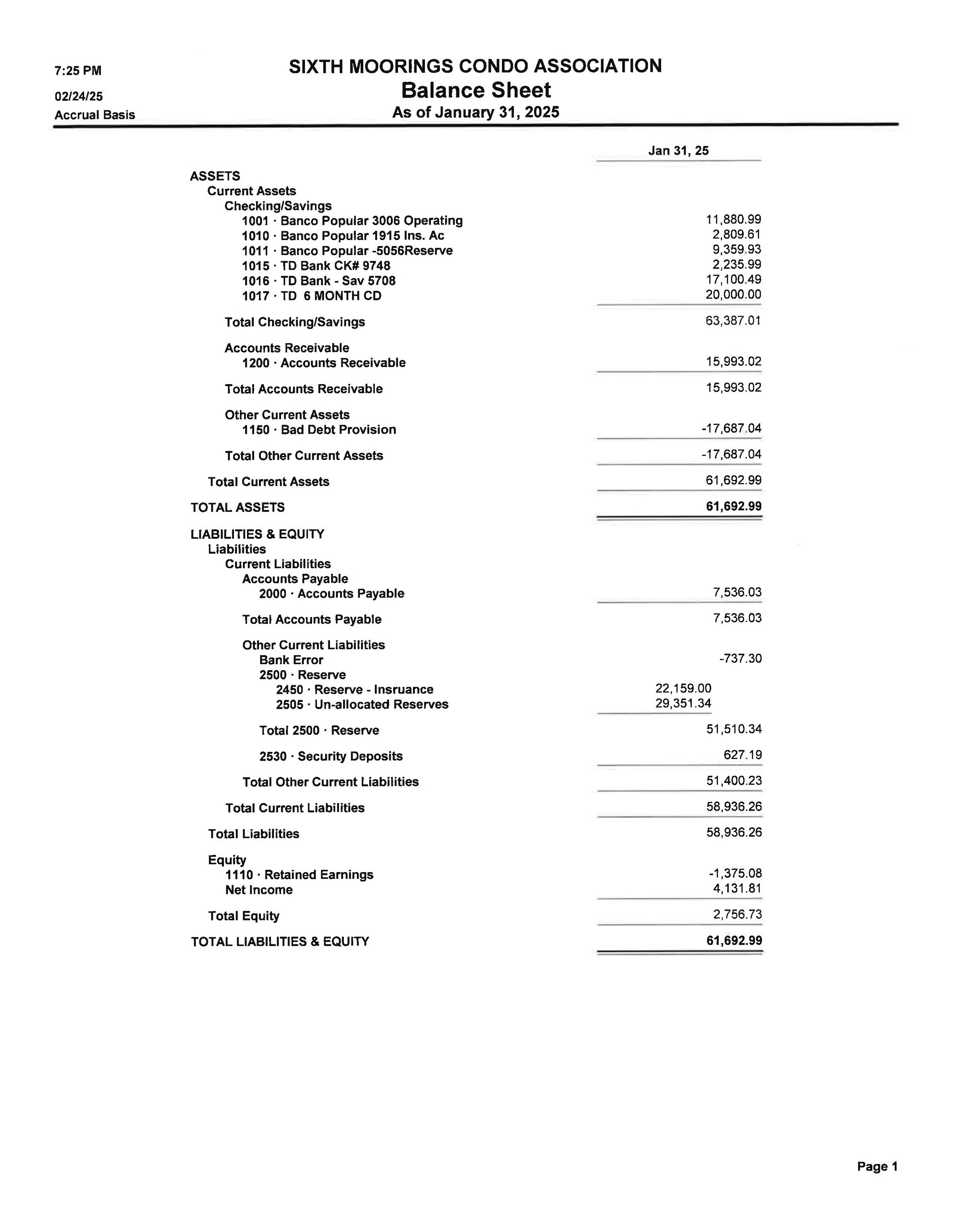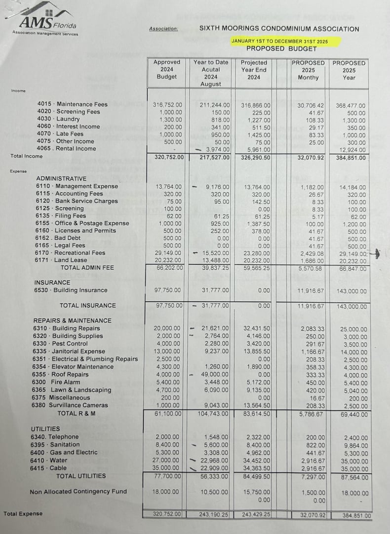 The current annual budget, proposed budgets, year‐end financial reports. Monthly income & expense statements.